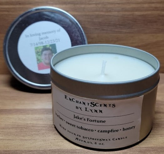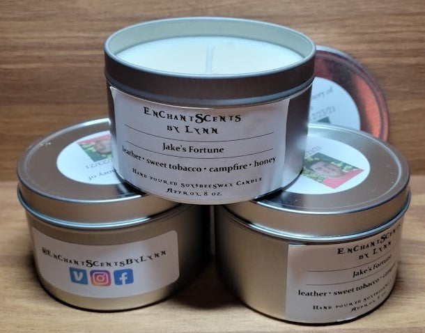 Jake's Fortune hand poured soy+beeswax wax melts by EnchantScents by Lynn. Approx. 8oz, in plastic container.